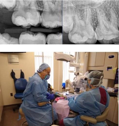 This photo displayed below shows the treatment of a sweet 15-year-old girl who had been suffering with continuous pain for two to three days that also kept her up at night. OTC analgesics were no longer alleviating her pain. She was diagnosed with pulp necrosis and symptomatic apical periodontitis of tooth #2, and then treated by one of our second-year endodontic residents. The look on this young girl’s face when we told her that she would be free of such pain was PRICELESS! This is why we do what we do! (Can you guess who was assisting in this treatment? … Yours truly.)